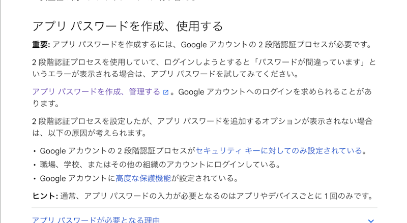 上記リンクのアプリ パスワードを作成、管理するをクリックしてください。