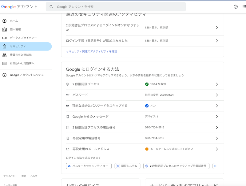 こちらにアクセスして2段階認証プロセスを有効にします。